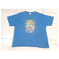 Thrashed and distressed condition. Very faded. A lot of small spots and tiny stains on front and back. Tagged XL, fits XXL. Please refer to the measurements before purchase. No refunds or returns.