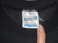 Good overall condition. Slightly faded. Loose stitching on collar and left pit. Euro tag, M on tag. Double stitch top and bottom. Please refer to the measurements before purchase. No refunds or returns.