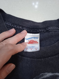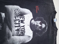 Good used condition. Killer fading. No flaws. John Lennon “New York City” T-shirt, featuring the famous 1974 Bob Gruen photograph of Lennon wearing a sleeveless NYC shirt and sunglasses. Tagged Tennessee River L Pit 21.5" Length 27.5" Express shipping worldwide.