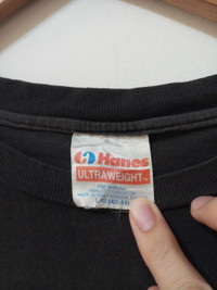 Distressed and worn-in thrashed Pornografitti promo from 1990.Small holes throughout especially the neck,shoulder and bottom.Thin and soft. Hanes tagged L. Pit: 20" Length:26.5" 3-7 days FedEx Express shipping worldwide‼️‼️‼️‼️ Please refer to the measurements before purchase. No refunds or returns.
