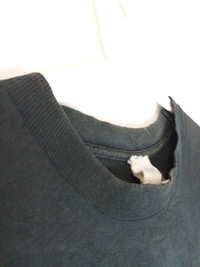Thrashed condition |Distressed Collar | Good numbers of wears and tears, like stains and holes *One hole on right armpit and one on the left armpit as well. Pit: 21" Length : 34" Please refer to the measurements before purchase. No refunds or returns.