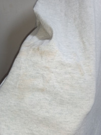Distressed thrashed condition. Tons and tons of stains and yellowing. Holes on tag. Please refer to the measurements before purchase. No refunds or returns.