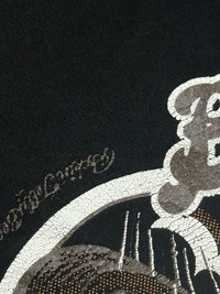 Thrashed condition. Distressing on collar and holes. Please refer to measurements before purchase. No refunds or returns.