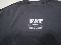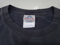 Distressed and well-worn. Sweet fading . Distressing on collar and one hole on the back of sleeve. Please refer to the measurements before purchase. No refunds or returns.