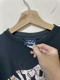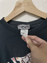 Distressed. Distressing on neckline. Faded. Please refer to the measurements before purchase. No refunds or returns.
