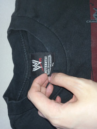 Good used condition. No major flaws. Faded spot on bottom. One of the most iconic designs, right around Edge's first retirement in 2011, post Wrestlemania 27. Please refer to the measurements before purchase. No refunds or returns.