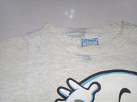 Thrashed very stained up condition. The whole shirt is very very yellowed with great numbers of stains and markings. The yellowing and markings are far far far more palpable in person. Please have a thorough look at the pictures and refer to the measurements before purchase. No refunds or returns.