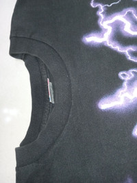 Good condition. No major flaws. Cracking on print. Slightly faded. Single stitch top and bottom. Very hard size to come across. Please refer to the measurements before purchase. No refunds or returns.