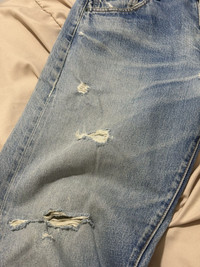 Perfect worn-in look with natural fading, whiskering, and distressed details. Rusted rivets and buttons. Distressing on crotch. Waist 28” Inseam 28” Outseam 38” Front Rise 11" Leg Opening 8" Express shipping worldwide :)