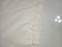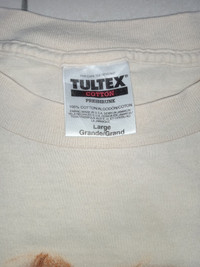 Good overall condition. No major flaws. Cracking on front and back print. Double top and bottom. Please refer to the measurements before purchase. No refunds or returns.