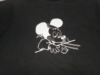 Great condition. Nicely faded. Distressing on collar. One of the best we've curated !! the Seditionaries Mickey design, which was part of the punk fashion line created by Vivienne Westwood and Malcolm McLaren in the late 1970s. Seditionaries was their influential clothing store that helped define the aesthetic of the punk movement, dressing bands like the Sex Pistols. The Mickey design often featured a subversive take on Disney’s Mickey Mouse, sometimes distorted or altered to fit the rebellious and anti-establishment ethos of the brand. Many of these pieces are now highly collectible and rare. Please refer to measurements before purchase. No refunds or returns.