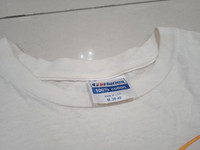 Good used condition. No major flaws. Yellowing on collar, shoulder and chest that needs some bleaching action. Please refer to the measurements before purchase. No refunds or returns.