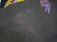 Good used condition. No major flaws. Bleach stains on left sleeve. Pit 23.5" Length 31.5"