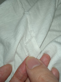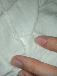Good overall condition. No major flaws. Very thin. Slight yellowing on collar. One hole around where tag sits, Two holes on left shoulder and one hole on hem. Double stitch top and bottom. Please refer to the measurements before purchase. No refunds or returns.