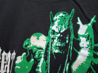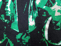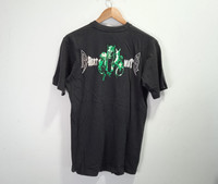 Good used condition. Yellowing on front and back print which adds character to the shirt. Single top and bottom. Please refer to the measurements before purchase. No refunds or returns.