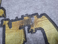 Good used condition. Yellowing on collar. One hole on the back. Size L. Please refer to the measurements before purchase. No refunds or returns.