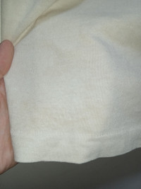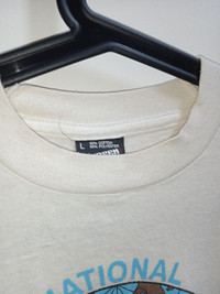 Well worn condition. A lot of yellowing and yellow spots. Screen Star tag. Single stitch top and bottom. Please refer to the measurements before purchase. No refunds or returns.