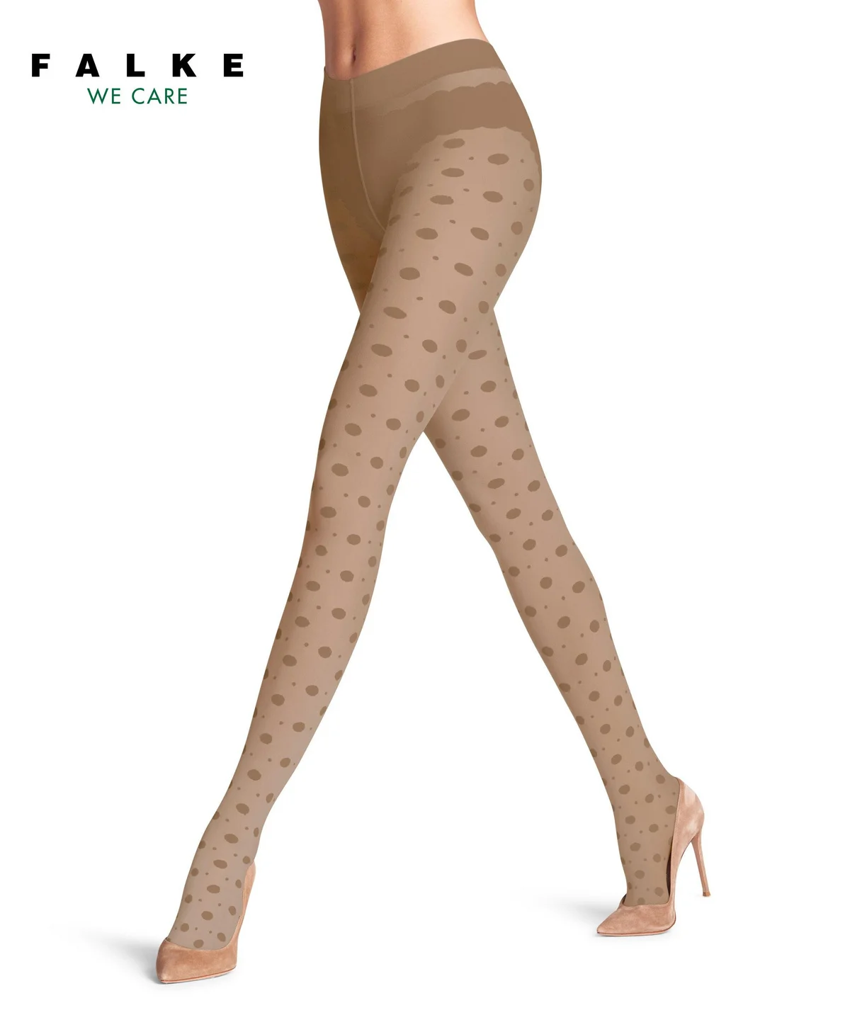- Fashionable sheer tights in a plated all-over pattern - Classic dotted design, reinterpreted - Part of the FALKE – WE CARE – Collection - Perfectly combinable with current fashion trends - High-quality processing using 3D knitting technology - 25 den appearance - FALKE Perfect Fit Attributes Denier: 25 Gender: Women Pattern: Dots Transparency: Transparent Material: 86% Polyamide (46% recycled), 14% Elastane Look: Fine Feel: Gentle on the skin Cuff style: Smooth Form: FALKE fit Style: Elegant Sustainability: Yes Item description The dots are in evergreen and are particularly trendy this autumn/winter season. The dots are luxuriously incorporated into the FALKE Snow Dot tights using a high-quality 3D knitting process.
