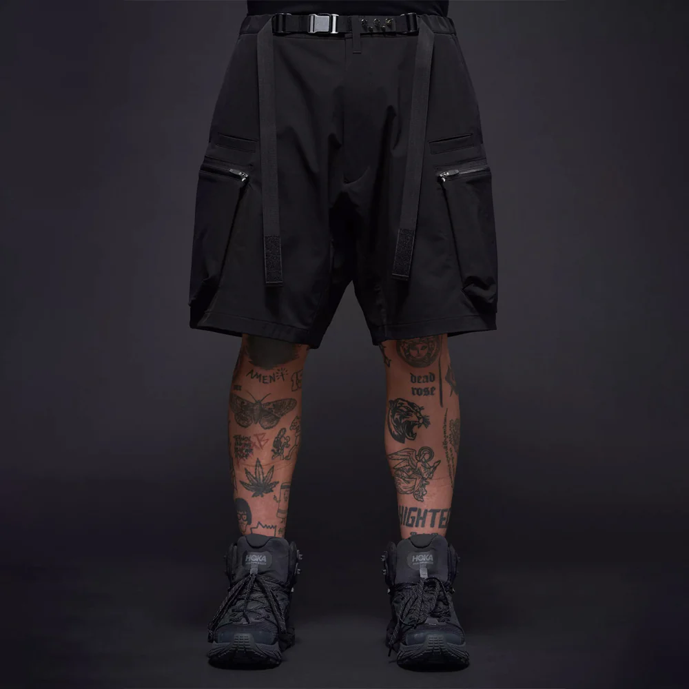 SP57 is an integrated web belt short pant with a relaxed fit and definitive Acronym® feature set. The ‘set it and forget it’ belt closure locks down and holds up anything you care to load into the 12 pocket array. TensionZipǽ cargo pockets are generously sized and canted for stability at speed. Deep Pocketsǽ pockets and Acronym® intrinsic phone pockets (4) almost guarantee that your EDC will never get lost. At least, once you habituate your personal pocket geography, that is (you haven’t lost your keys, your pants are just holding them for you). SP57-DS is made in heavyweight schoeller® 3XDRY® Dryskin™; abrasion resistant, water repellent, 4-way stretch, moisture managing, and fast drying. Optimal for all season use. Fabric technology schoeller® 3XDRY® DRYSKIN™ _(91% PA, 9% EL) _Made in Switzerland Product Colour: Black Product Code:SP57-DS-BLACK SIZE S & SIZE M AVAILABLE, BRAND NEW, FULL PACK NO TRADE !!! Will declare the stuff for low value regarding customs 100% authentic with everything