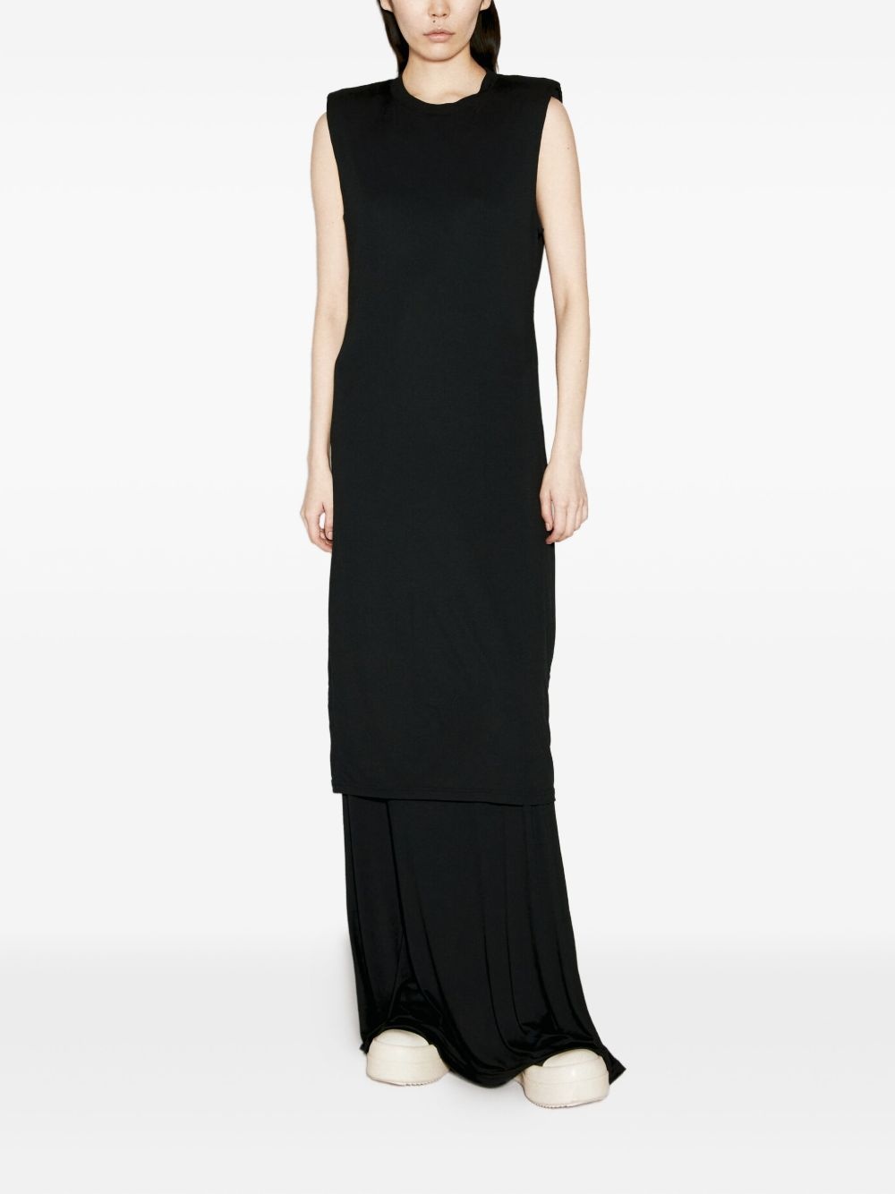 layered shoulder-padded maxi dress Highlights - Black - Shoulder pads - Layered skirt - Sleeveless - Round neck - Straight hemline Imported Composition Modal 91%, Elastane 9% Washing instructions Read Manufacturer Guidelines