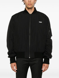 logo-print bomber jacket Highlights - Black - Logo print at the chest - Logo print to the rear - Baseball collar - Long sleeves - Sleeve zip pocket - Ribbed trim - Two press-stud fastening side pockets - Straight hem - Front zip fastening - When buying this unisex item, keep in mind that it is graded in standard men's sizing. Imported Composition Outer: Polyester 100%, Polyurethane 100% Lining: Polyester 100% SIZE & FIT Model measurements Height 5 ft 11 in(1.8 m) Bust/Chest 31.49 in(80 cm) Hips 36.61 in(93 cm) Waist 24.4 in(62 cm) FittingInformation This piece is unisex – if you usually select men's sizing expect a loose fit throughout; if you usually select women's sizes, expect an oversized fit The ribbed hem offers a close, comfortable fit Made from a padded non-stretch fabric, giving it no natural elasticity