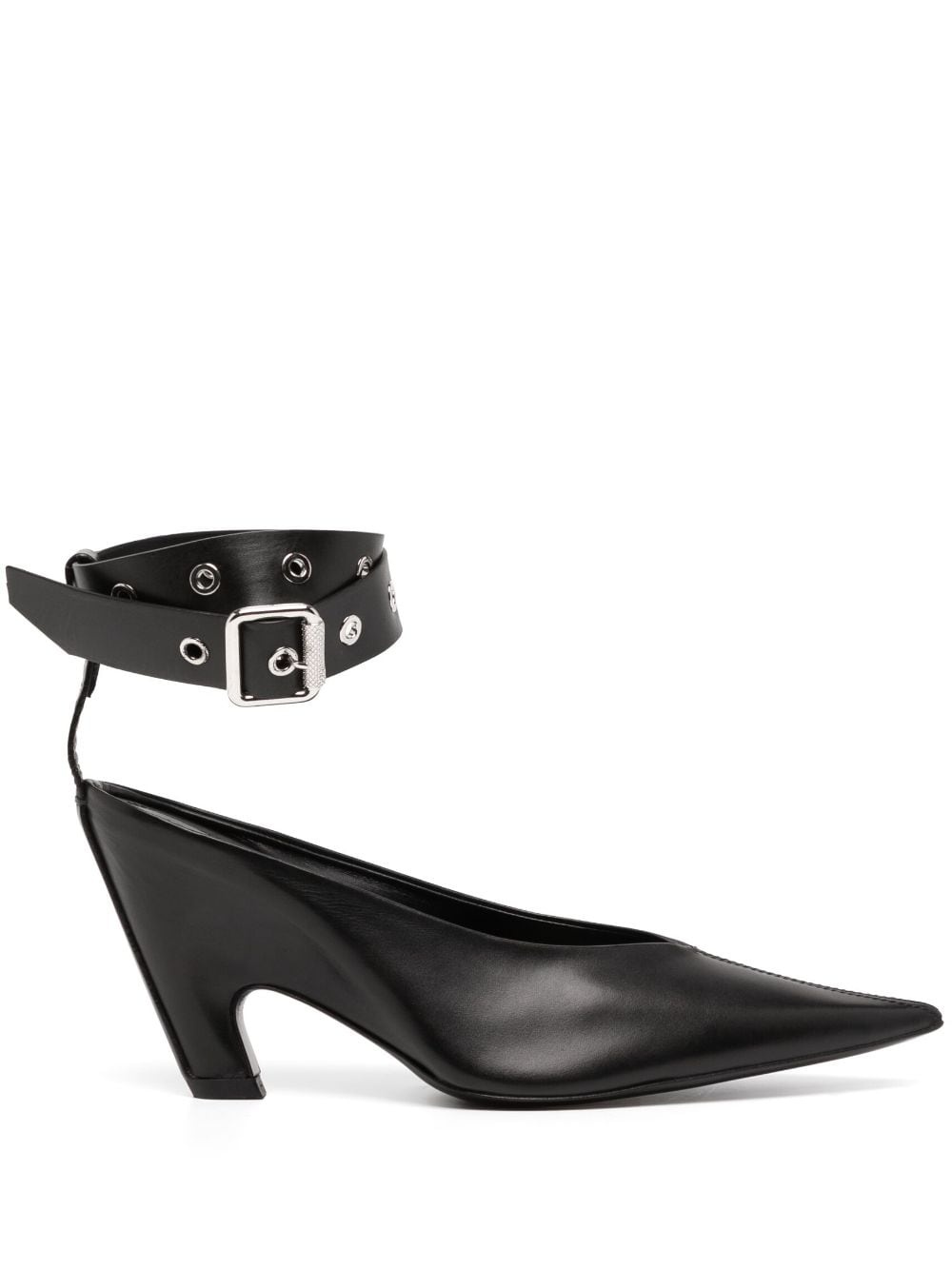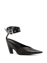 100mm pointed-toe pumps Highlights - Black - Leather - Silver-tone hardware - Pointed toe - Buckle-fastening ankle strap - Branded insole - 100mm high heel - Leather sole Made in Italy Composition Outer: Leather 100% Sole: Leather 100% Lining: Leather 100% SIZE & FIT Measurement HEEL 3.93 in(10 cm)