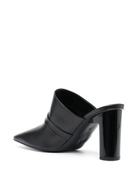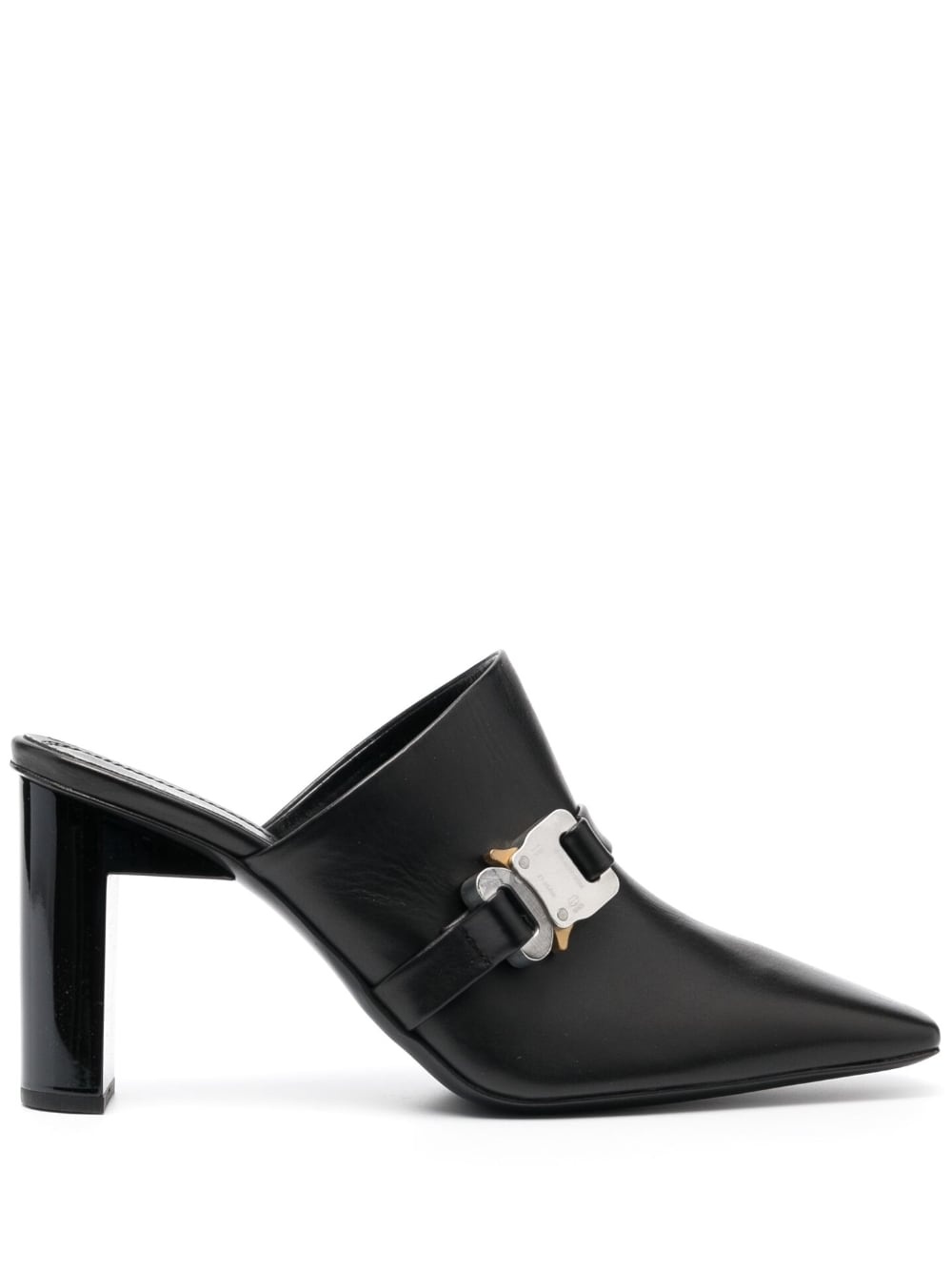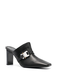 90mm square-toe leather mules Highlights - Black - Calf leather - Decorative buckle detail - Square toe - Branded footbed - 90mm block heel Made in Italy Composition Sole: Calf Leather 100% Lining: Calf Leather 100% Outer: Calf Leather 100% SIZE & FIT Measurement HEEL 3.54 in(9 cm)