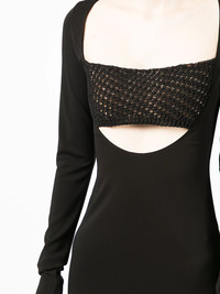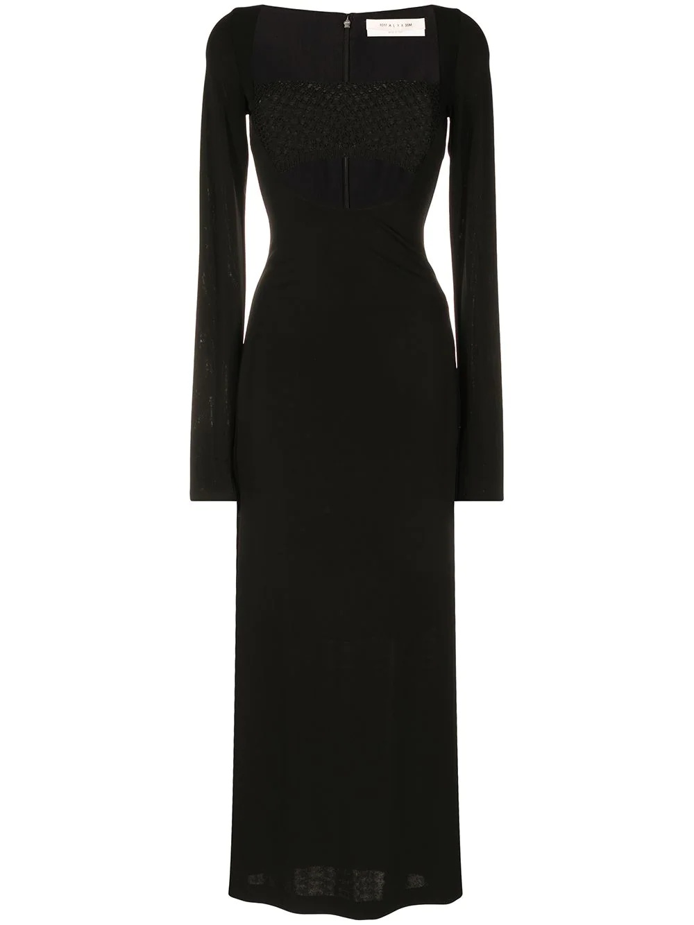 bandeau-panel macrame knit dress Defined by a plunging scoop neck and bandeau panel, this macrame knit dress exhibits 1017 ALYX 9SM's edgy style. Made in Italy Composition Viscose 98%, Elastane 2% SIZE & FIT Model measurements Height 5 ft 10 in(1.79 m) Bust/Chest 31.49 in(80 cm) Hips 35.03 in(89 cm) Waist 24.01 in(61 cm) FittingInformation This piece fits true to size. We recommend you get your regular size Designed for a close fit at the bust, waist and hips Made with a mid-weight fabric Washing instructions Hand Wash