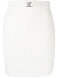 buckle-detail knit miniskirt This knitted miniskirt from 1017 ALYX 9SM is punctuated by a silver-tone buckle sitting at the waist, a detail seen throughout the label's collections. Highlights - White - Knitted construction - Silver-tone hardware - Buckle fastening - Ribbed waistband - Thigh-length - Straight hem Made in Italy Composition Viscose 100% SIZE & FIT Model measurements Height 5 ft 10 in(1.79 m) Bust/Chest 31.1 in(79 cm) Hips 35.03 in(89 cm) Waist 24.01 in(61 cm) FittingInformation This mini-length skirt is intended to be worn high on the waist The elasticated waist allows for a comfortable fit Made with a midweight knit, this piece offers some stretch This piece fits close in all sizes – take your usual size