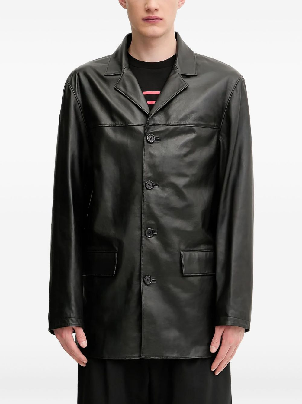 buttoned leather jacket Highlights Imported Composition Calf Leather 100%