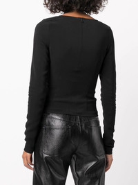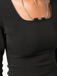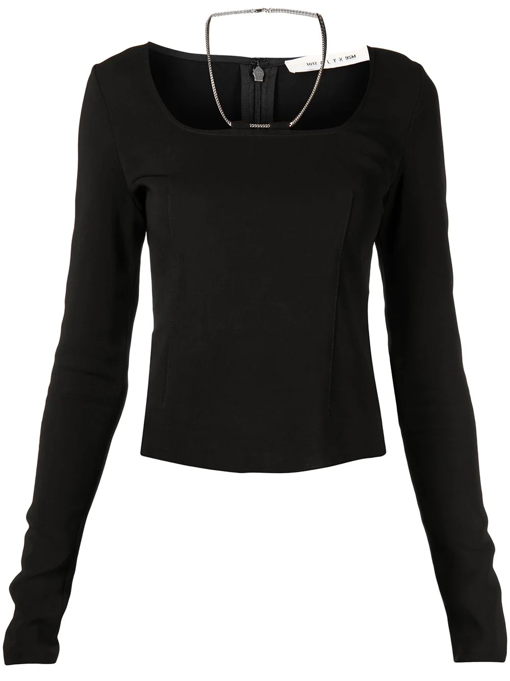 chain-link long-sleeved top black chain-link detailing square neck rear zip fastening long sleeves straight hem Imported Composition Rayon 97%, Spandex/Elastane 3% SIZE & FIT Model measurements Height 5 ft 10 in(1.77 m) Bust/Chest 31.88 in(81 cm) Hips 34.64 in(88 cm) Waist 24.01 in(61 cm) FittingInformation This piece fits true to size. We recommend you get your regular size Cut for a close fit Made with a mid-weight fabric Washing instructions Dry Clean Only