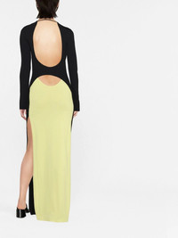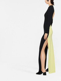 colour-block cut-out maxi dress black/pastel yellow knitted construction colour-block panelled design cut-out detailing crew neck long sleeves side slits floor-length Made in Italy Composition Viscose 65%, Polyamide 35% SIZE & FIT Model measurements Height 5 ft 11 in(1.8 m) Bust/Chest 31.49 in(80 cm) Hips 35.43 in(90 cm) Waist 25.19 in(64 cm) FittingInformation This piece fits true to size. We recommend you get your regular size Designed for a close fit at the bust, waist and hips Made with a mid-weight fabric Washing instructions Machine Wash