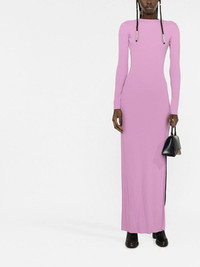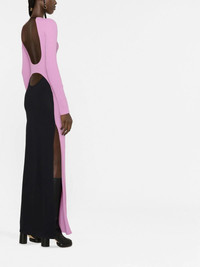 colour-block cut-out maxi dress black/light mauve knitted construction cut-out detailing crew neck long sleeves side slits floor-length Made in Italy Composition Viscose 65%, Polyamide 35% SIZE & FIT Model measurements Height 5 ft 10 in(1.79 m) Bust/Chest 31.1 in(79 cm) Hips 35.03 in(89 cm) Waist 24.01 in(61 cm) FittingInformation This piece fits true to size. We recommend you get your regular size Designed for a close fit at the bust, waist and hips Made with a mid-weight fabric Washing instructions Machine Wash