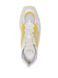 contrast-trim low-top sneakers white/yellow calf leather contrasting trim logo-debossed tongue branded heel counter branded insole front lace-up fastening pull-tab at the heel chunky rubber sole Made in Italy Composition Outer: Calf Leather 36%, Polyester 32% Lining: Leather 100% Sole: Rubber 100% SIZE & FIT Measurement HEEL 2.75 in(7 cm) Sole height 1.57 in(4 cm)