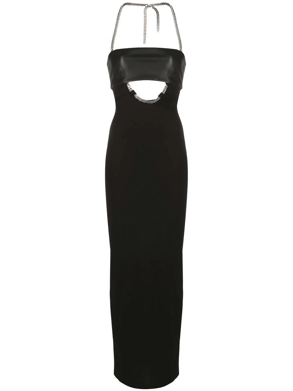 cut-out fitted maxi dress American brand 1017 Alyx 9SM is known for creating irreverent designs with avant-garde detailing. This maxi dress is no exception, standing with cut-out details on the front and back, while being decorated with silver-tone chain-link. Made in Italy Composition Outer: Viscose 98%, Spandex/Elastane 2% Lining: Polyamide 90%, Spandex/Elastane 10% SIZE & FIT Model measurements Height 5 ft 9 in(1.76 m) Bust/Chest 31.88 in(81 cm) Hips 35.43 in(90 cm) Waist 24.01 in(61 cm) FittingInformation This piece fits true to size. We recommend you get your regular size Designed for a close fit at the bust, waist and hips Made with a mid-weight stretch fabric