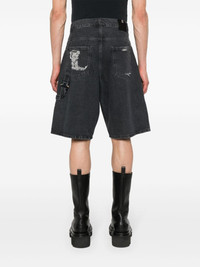 distressed-effect denim shorts Highlights - Black - Cotton - Denim - Washed - Ripped detailing - Distressed effect - Belt loops - Decorative buckle detailing - Classic five pockets - Logo patch to the rear - Concealed fly and button fastening Made in Italy Composition Outer: Cotton 100% Lining: Cotton 100% SIZE & FIT Model measurements Height 6 ft 2 in(1.87 m) Bust/Chest 37.79 in(96 cm) Hips 37.79 in(96 cm) Waist 30.31 in(77 cm) FittingInformation Designed with a wide leg, offering a loose and roomy fit Sturdy and hard-wearing, this denim piece offers no stretch This piece fits true to size – take your usual size Washing instructions Hand Wash