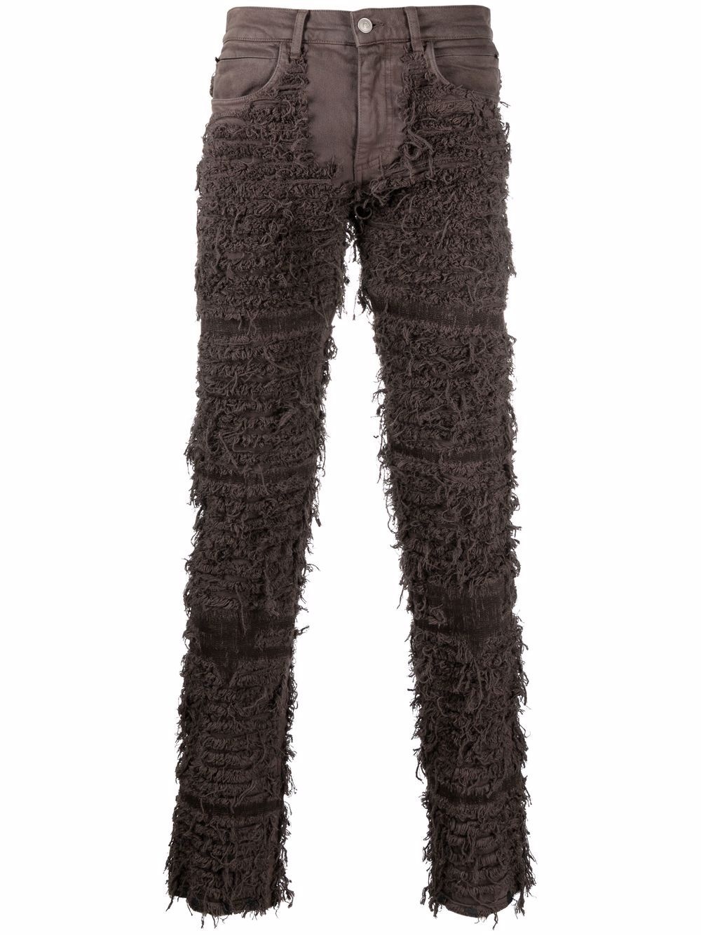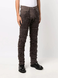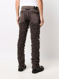 frayed slim-fit jeans chocolate brown stretch-cotton frayed detailing logo patch to the rear slim cut belt loops button fly fastening classic five pockets Made in Italy Composition Cotton 98%, Spandex/Elastane 2% SIZE & FIT Model measurements Height 6 ft 1 in(1.86 m) Bust/Chest 35.43 in(90 cm) Hips 35.43 in(90 cm) Waist 29.92 in(76 cm) Washing instructions Machine Wash