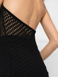 fringe-trim crochet-knit mini dress This knitted 1017 Alyx 9SM mini dress is designed with leather fringing and a sheer crochet construction. It has been fabricated in Italy and benefits from a versatile black colourway. Made in Italy Composition Goat Skin 100%, Cotton 65%, Polyamide 35% SIZE & FIT Model measurements Height 5 ft 10 in(1.79 m) Bust/Chest 33.07 in(84 cm) Hips 35.82 in(91 cm) Waist 24.01 in(61 cm) FittingInformation This piece fits true to size. We recommend you get your regular size Cut for a close fit Made with a mid-weight fabric Washing instructions Dry Clean Only