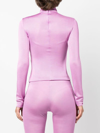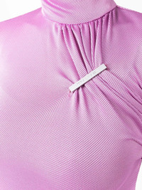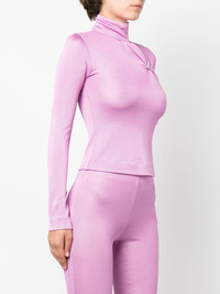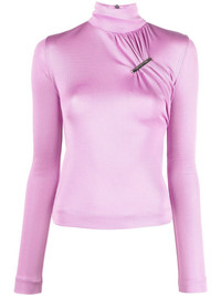 gathered clip-design top intense mauve gathered detailing engraved logo clip high neck long sleeves straight hem Made in Italy Composition Viscose 98%, Spandex/Elastane 2% SIZE & FIT Model measurements Height 5 ft 11 in(1.81 m) Bust/Chest 36.61 in(93 cm) Hips 37.4 in(95 cm) Waist 24.8 in(63 cm) FittingInformation This piece fits true to size. We recommend you get your regular size Cut for a close fit Made with a mid-weight stretch fabric Washing instructions Hand Wash