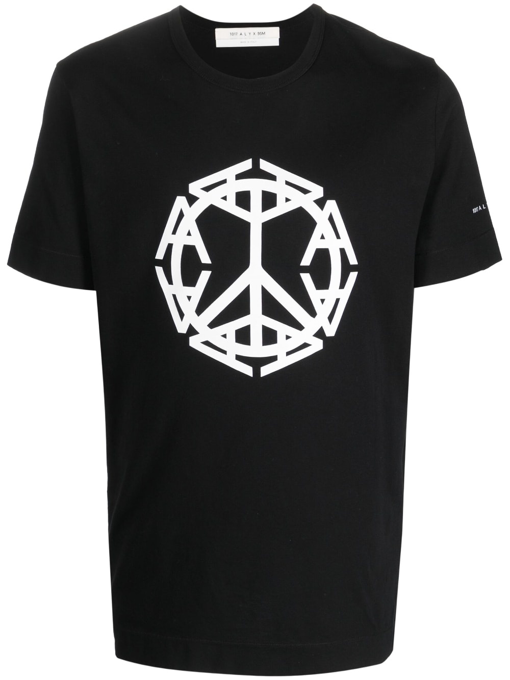 graphic-print cotton T-shirt Highlights - Black - Cotton - Graphic print to the front - Logo print at the sleeve - Crew neck - Short sleeves - Straight hem - When buying this unisex item, keep in mind that it is graded in standard men's sizing. Made in Italy Composition Cotton 100% SIZE & FIT Model measurements Height 5 ft 11 in(1.8 m) Bust/Chest 31.49 in(80 cm) Hips 35.82 in(91 cm) Waist 24.8 in(63 cm) FittingInformation This unisex piece is designed for a relaxed fit whether you usually select women's or men's sizes Made from a midweight non-stretch fabric, this piece offers minimal elasticity when worn