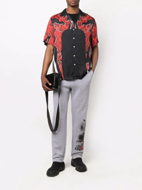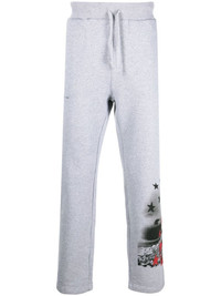 graphic-print track pants grey melange cotton logo print at the leg graphic print to the side straight leg elasticated drawstring waistband two side inset pockets rear welt pocket Imported Composition Cotton 100% SIZE & FIT Model measurements Height 6 ft 2 in(1.89 m) Bust/Chest 35.43 in(90 cm) Hips 36.61 in(93 cm) Waist 28.74 in(73 cm) FittingInformation This piece fits true to size. We recommend you get your regular size Designed for a slim fit at the waist and loose over the leg Made with a mid-weight fabric Washing instructions Machine Wash