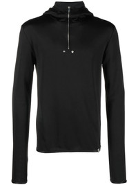 half-zip long-sleeved sweatshirt black half front zip fastening high neck long sleeves straight hem Made in Italy Composition Lining: Polyester 100%, Viscose 80%, Polyamide 16%, Spandex/Elastane 4% SIZE & FIT Model measurements Height 6 ft 2 in(1.88 m) Bust/Chest 36.61 in(93 cm) Hips 35.82 in(91 cm) Waist 27.95 in(71 cm) Measurement CHEST 39.76 in(101 cm) SLEEVE LENGTH 37 in(94 cm) Shoulder Width 17.71 in(45 cm) FittingInformation This piece fits true to size. We recommend you get your regular size Cut for a relaxed fit Made with a mid-weight fabric Washing instructions Machine Wash