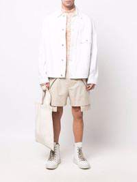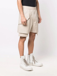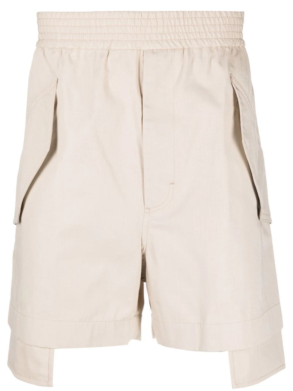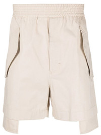 layered straight bermuda shorts sand beige cotton mid-rise elasticated waistband two side slit pockets two rear welt pockets asymmetric hem Made in Italy Composition Outer: Cotton 100% Lining: Cotton 100% SIZE & FIT Model measurements Height 6 ft 1 in(1.85 m) Bust/Chest 37.79 in(96 cm) Hips 37.4 in(95 cm) Waist 30.7 in(78 cm) Washing instructions Hand Wash