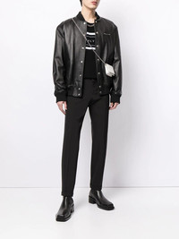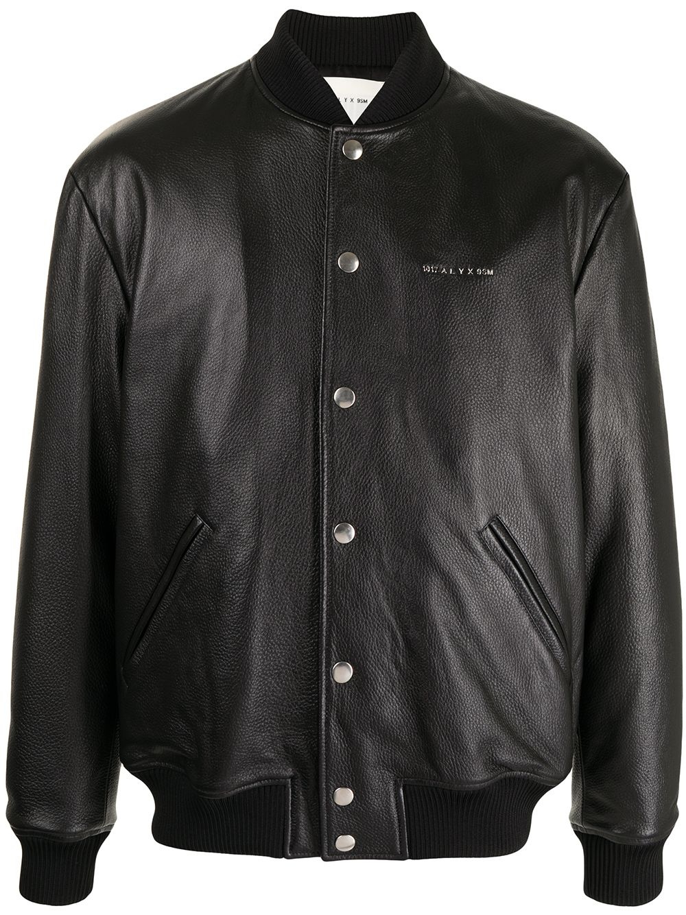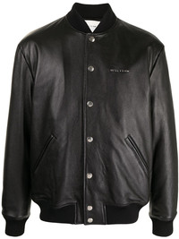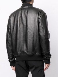 logo-print pebbled leather jacket black leather pebbled texture logo print at the chest baseball collar front button fastening long sleeves elasticated cuffs two side welt pockets elasticated hem Made in Italy Composition Leather 100% SIZE & FIT Model measurements Height 6 ft 0 in(1.84 m) Bust/Chest 35.43 in(90 cm) Hips 35.82 in(91 cm) Waist 28.74 in(73 cm) FittingInformation This piece fits true to size. We recommend you get your regular size Cut for a loose fit Made with a mid-weight non-stretch fabric Washing instructions Dry Clean Only