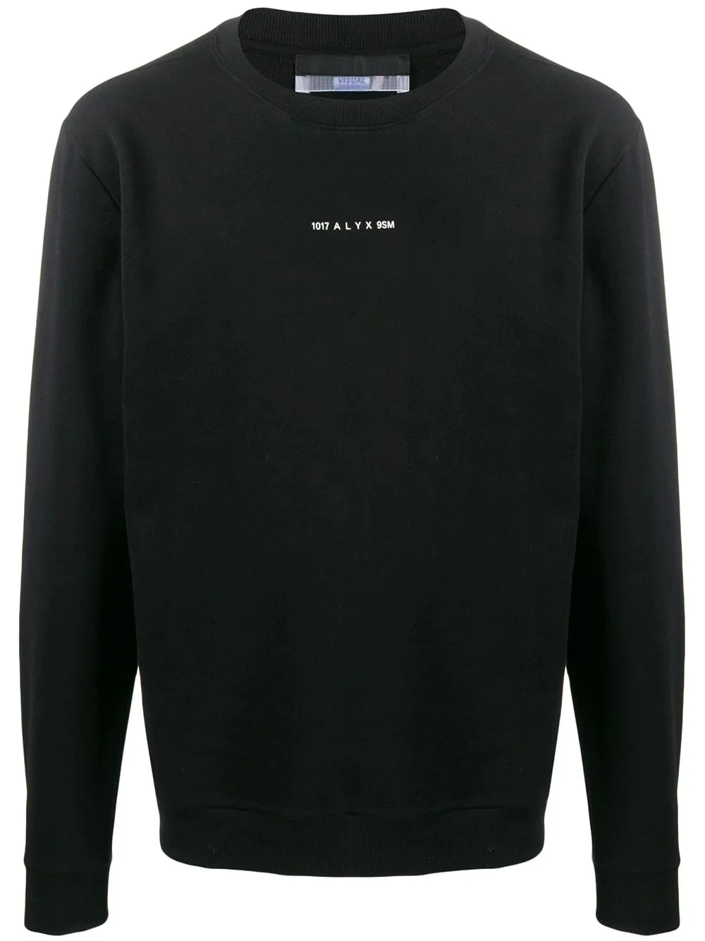 logo print sweatshirt Black cotton blend logo print sweatshirt from 1017 ALYX 9SM featuring a round neck, long sleeves, fitted cuffs and a printed logo. Imported Composition Cotton 52%, Polyester 48% SIZE & FIT Model measurements Height 6 ft 1 in(1.85 m) Bust/Chest 35.82 in(91 cm) Hips 37.79 in(96 cm) Waist 29.13 in(74 cm) FittingInformation This piece fits true to size. We recommend you get your regular size Cut for a relaxed fit Washing instructions Machine Wash