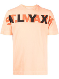 logo-print T-shirt light orange cotton logo print at the chest crew neck short sleeves straight hem Imported Composition Body: Cotton 100% SIZE & FIT Model measurements Height 6 ft 2 in(1.87 m) Bust/Chest 34.25 in(87 cm) Hips 36.22 in(92 cm) Waist 29.52 in(75 cm) FittingInformation This piece fits true to size. We recommend you get your regular size Cut for a loose fit Made with a mid-weight fabric Washing instructions Machine Wash