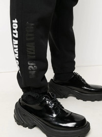 logo print track trousers black/white cotton logo print to the side high waist elasticated waistband two side slit pockets rear welt pocket straight leg tie-fastening ankle strap Made in Italy Composition Cotton 100% SIZE & FIT Model measurements Height 6 ft 1 in(1.86 m) Bust/Chest 36.61 in(93 cm) Hips 36.61 in(93 cm) Waist 29.92 in(76 cm) FittingInformation This piece fits true to size. We recommend you get your regular size Cut for a slim fit Made with a mid-weight fabric Washing instructions Machine Wash