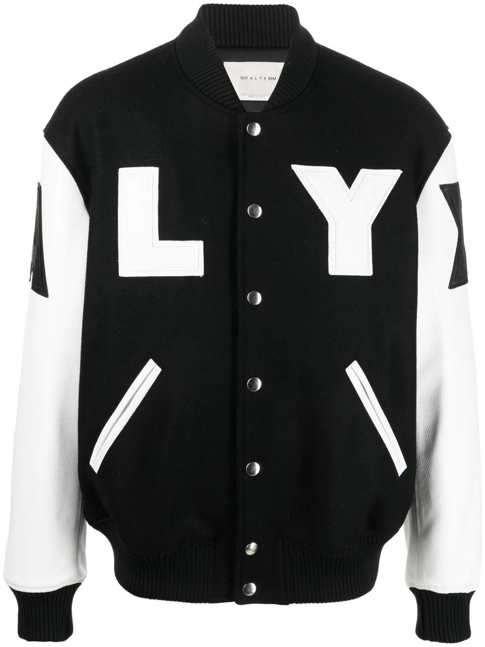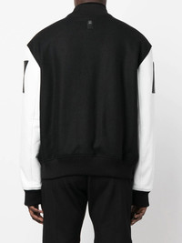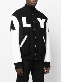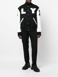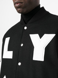 logo-print varsity jacket black/white wool-lambskin blend fine knit all-over logo print front press-stud fastening long sleeves elasticated cuffs elasticated hem Made in Italy Composition Outer: Lambskin 100%, Wool 80%, Polyamide 20% Lining: Viscose 100%, Polyester 100% SIZE & FIT Model measurements Height 6 ft 0 in(1.84 m) Bust/Chest 35.82 in(91 cm) Hips 37 in(94 cm) Waist 28.34 in(72 cm) FittingInformation This piece fits true to size. We recommend you get your regular size Cut for a loose fit Made with a mid-weight non-stretch fabric Washing instructions Specialist Cleaning
