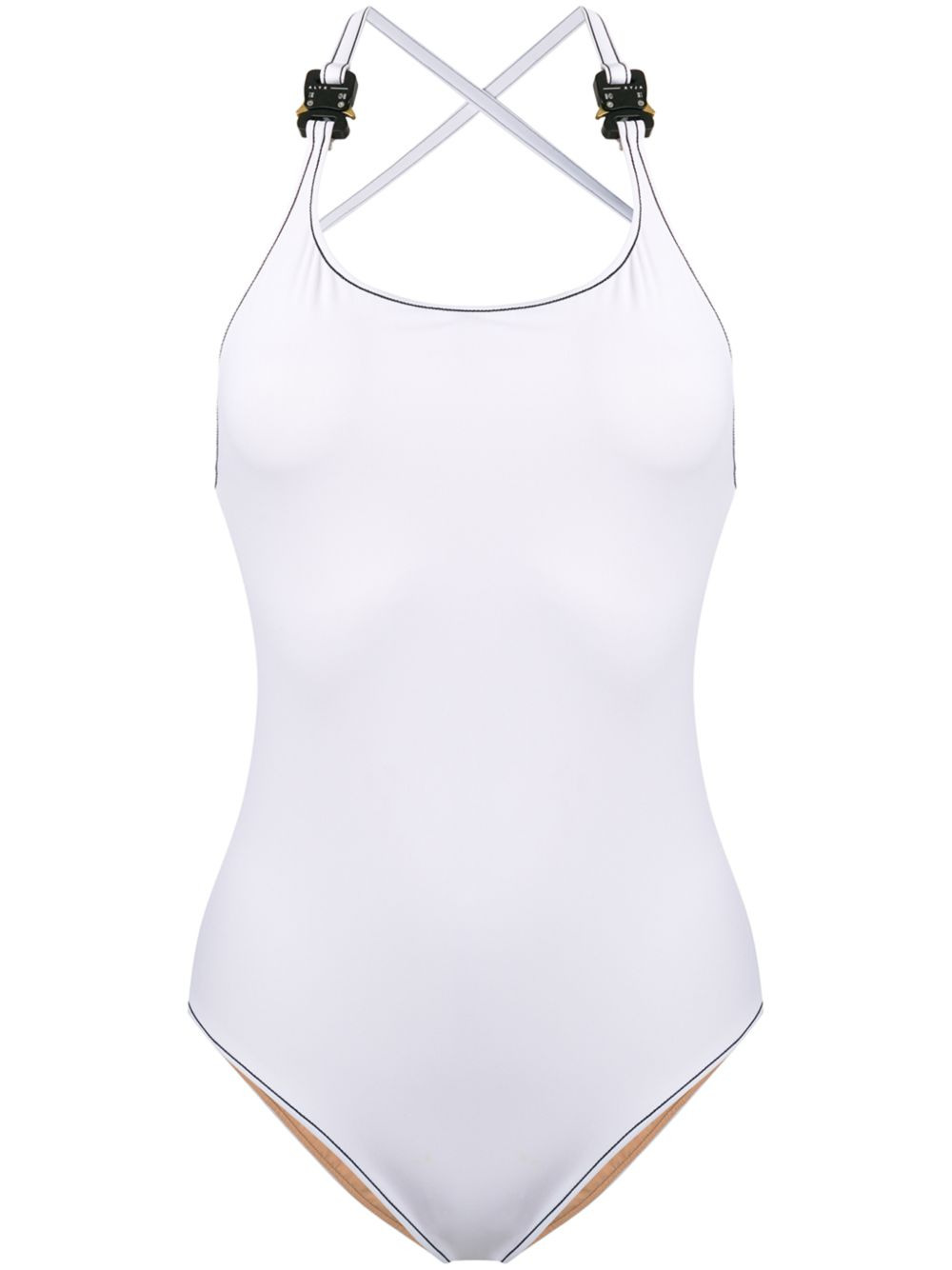 Lucy swimsuit The concept behind Alyx is a simple one; high-quality materials mixed with subversive culture to achieve a refined streetwear aesthetic. This white Lucy swimsuit features a round neck, a sleeveless design and a crisscross back. Made in Italy Composition Lining: Polyamide 73%, Spandex/Elastane 27% Outer: Polyamide 59%, Spandex/Elastane 41% Washing instructions Machine Wash