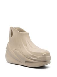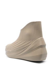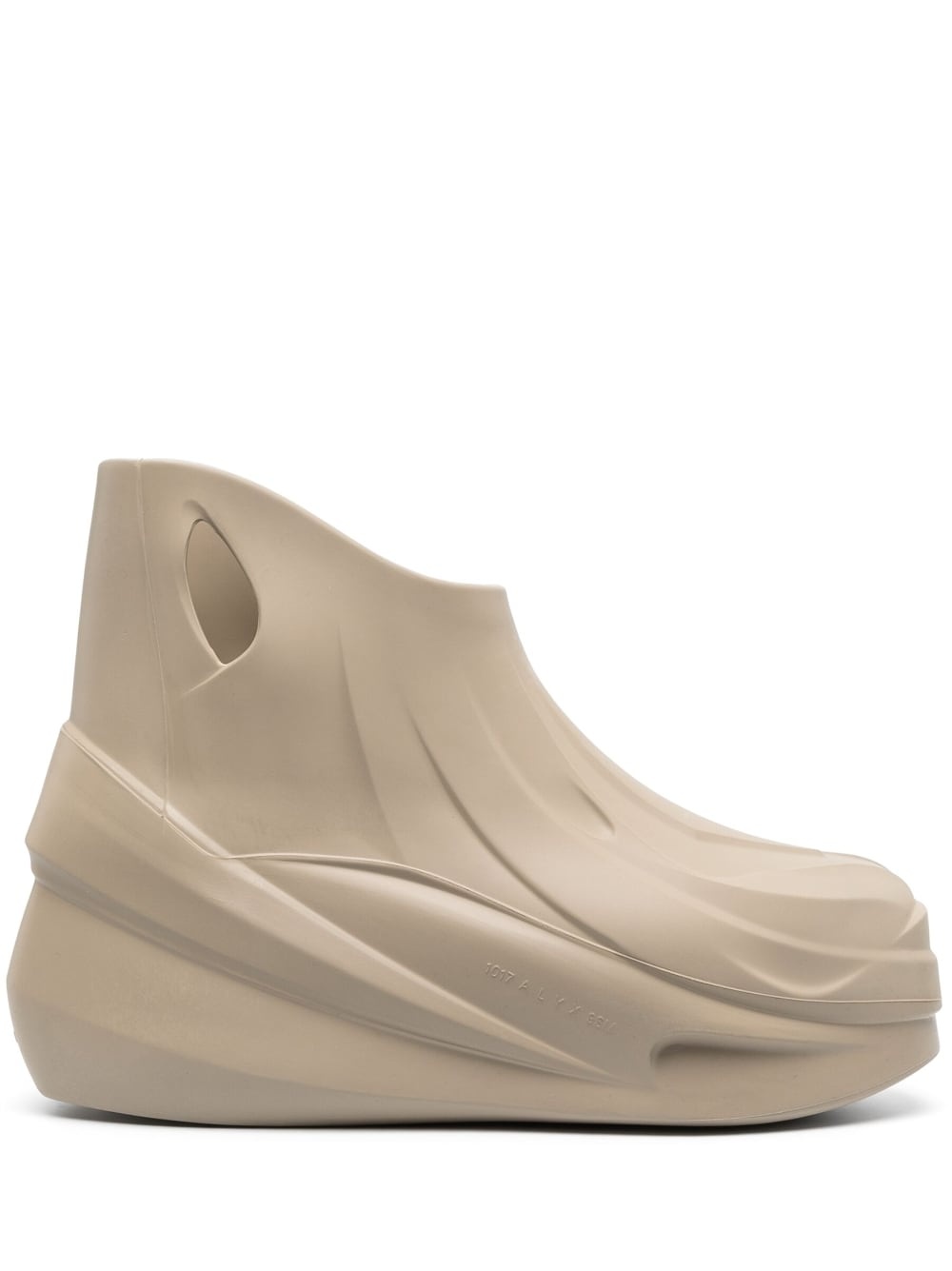 Mono ankle wedge boots Highlights - Sand beige - Textured finish - Seamless - Cut-out detailing - Square toe - Slip-on style - Platform wedge - Ankle-length Made in Italy Composition Outer: Rubber 100% Lining: Rubber 100% Sole: Rubber 100% SIZE & FIT Measurement HEEL 2.55 in(6.5 cm) CIRCUMFERENCE 13.77 in(35 cm) Sole height 1.37 in(3.5 cm) HEIGHT 5.31 in(13.5 cm) FittingInformation This piece fits large – take one size down
